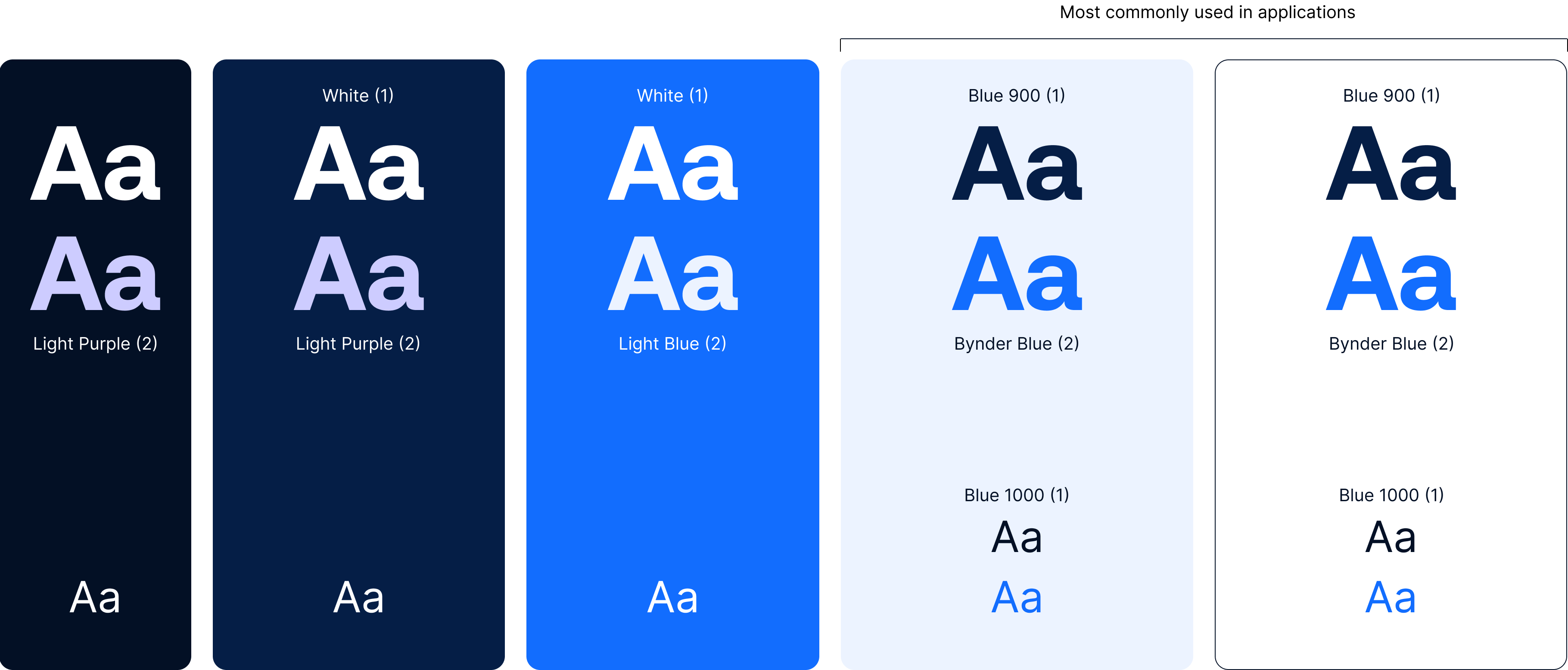 Here’s some color combinations to help you ensure optimal contrast and the right visual output. The width of the background tiles represents usage proportions in layouts. Number 1 stands for primary use, number 2 stands for secondary usage.